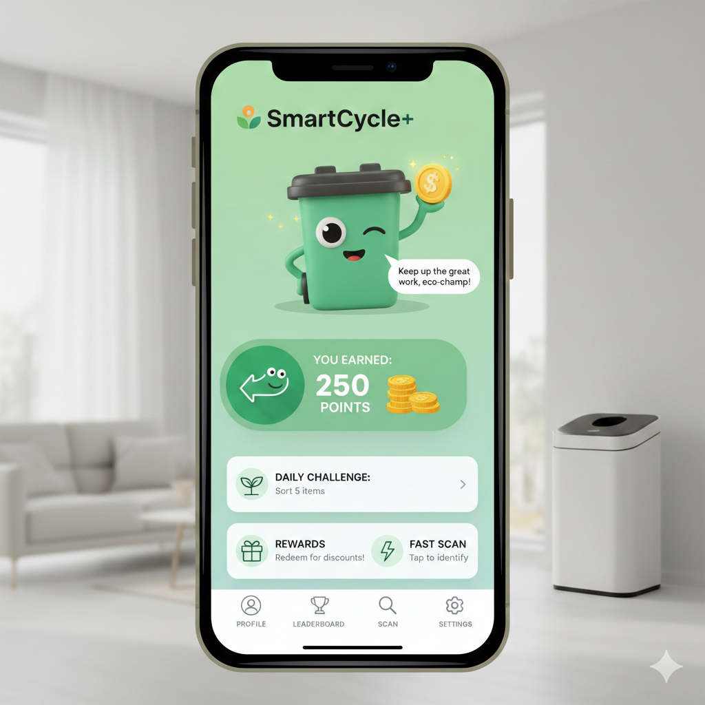 Το SmartCycle+ είναι μια ολοκληρωμένη λύση διαχείρισης απορριμμάτων που μετατρέπει την ανακύκλωση από αγγαρεία σε μια ανταποδοτική και διασκεδαστική εμπειρία. Η πρότασή μας συνδυάζει "έξυπνο" υλικό (hardware) και λογισμικό (software) για να δημιουργήσει ένα οικοσύστημα πιστότητας και ανταμοιβής.